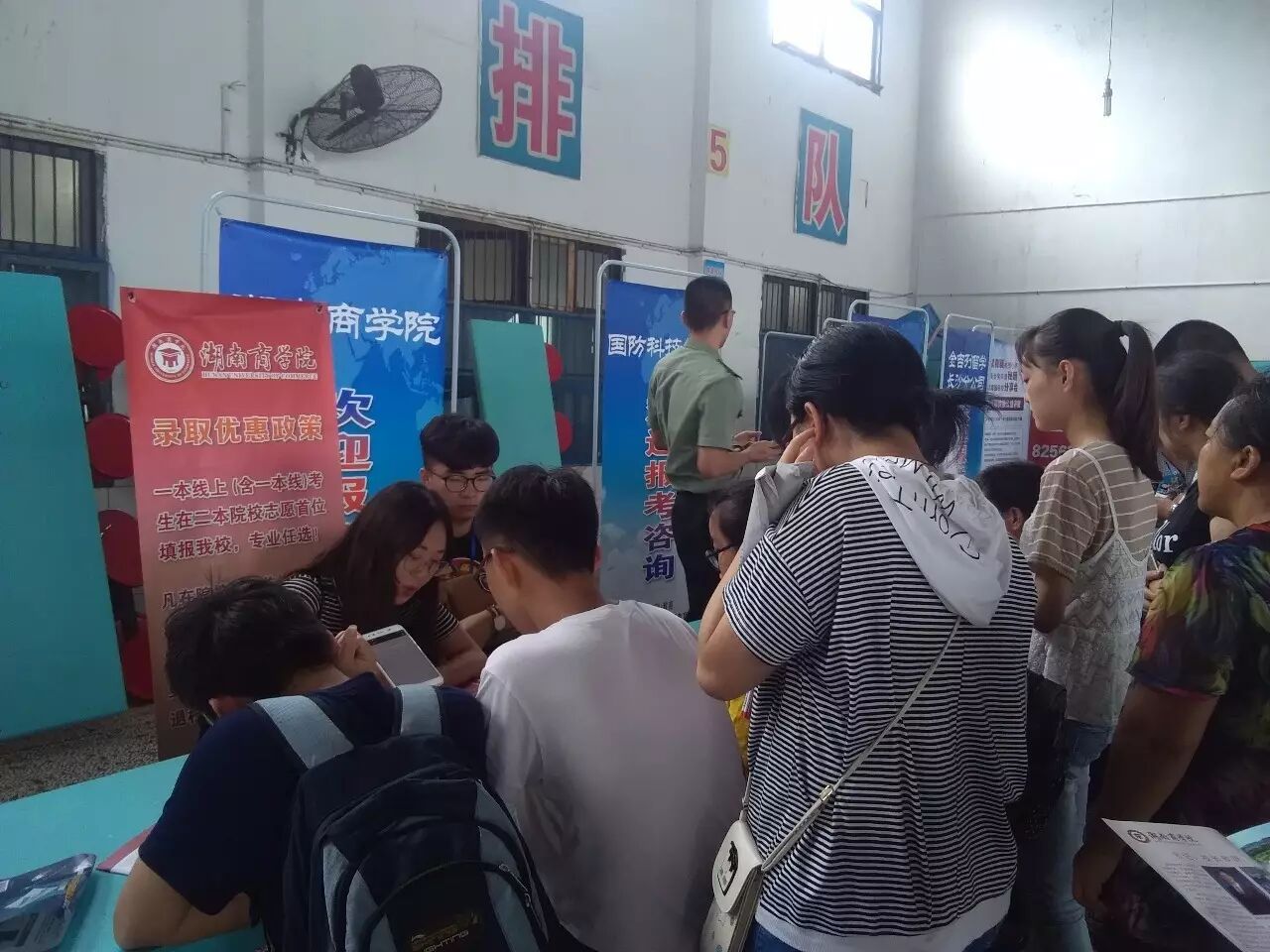 现场每个高校展位前都挤满了来自各个学校的家长和考生。考生们仔细询问高校在湖南招生的人数、专业和往年录取分数情况。