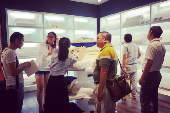 2016年8月11日-14日,第36届国际名家具(东莞)展览会在广州东莞举行。近年来,随着人们对优越的生活品质和舒适的生活质量的需求的不断提高,高端舒适的品牌家私备受消费者青睐,江盈家居作为一站式乳胶材料供应商,一直致力于为人们提供更好更精致的睡眠,在此次展会中江盈自研的100%纯天然乳胶床垫、枕头都备受关注和追捧,尤其是根据人体功能设计的各种功能型枕头,更是赚足了眼球!